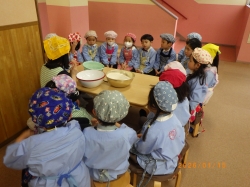 次の日年長さんがぺったんぺったんとお餅をついて、頑張ってくれました🌟